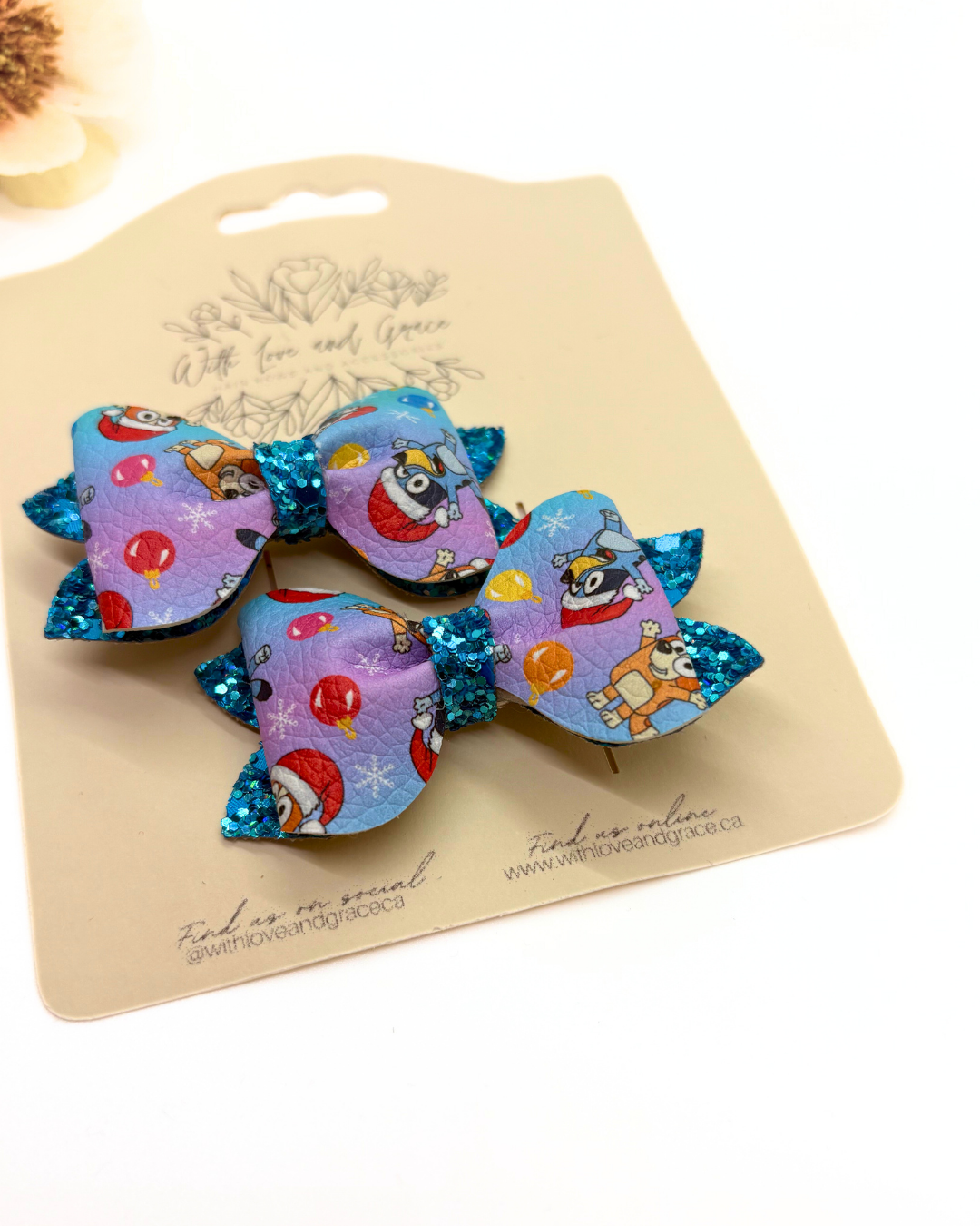 Celebrate the festive season with the Blue Heeler Pinch Piggy Bow, inspired by the loyal and fun-loving friends from your favorite TV show. This playful accessory adds a splash of cheer and friendship to any Christmas outfit or gift wrap, making every moment as warm and joyful as a cozy holiday gathering.
