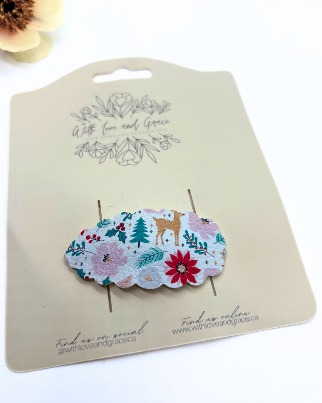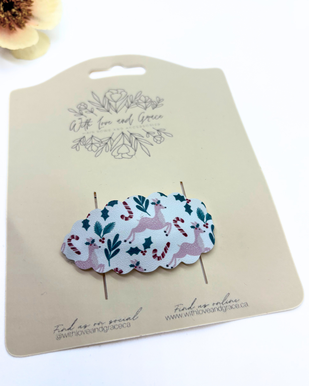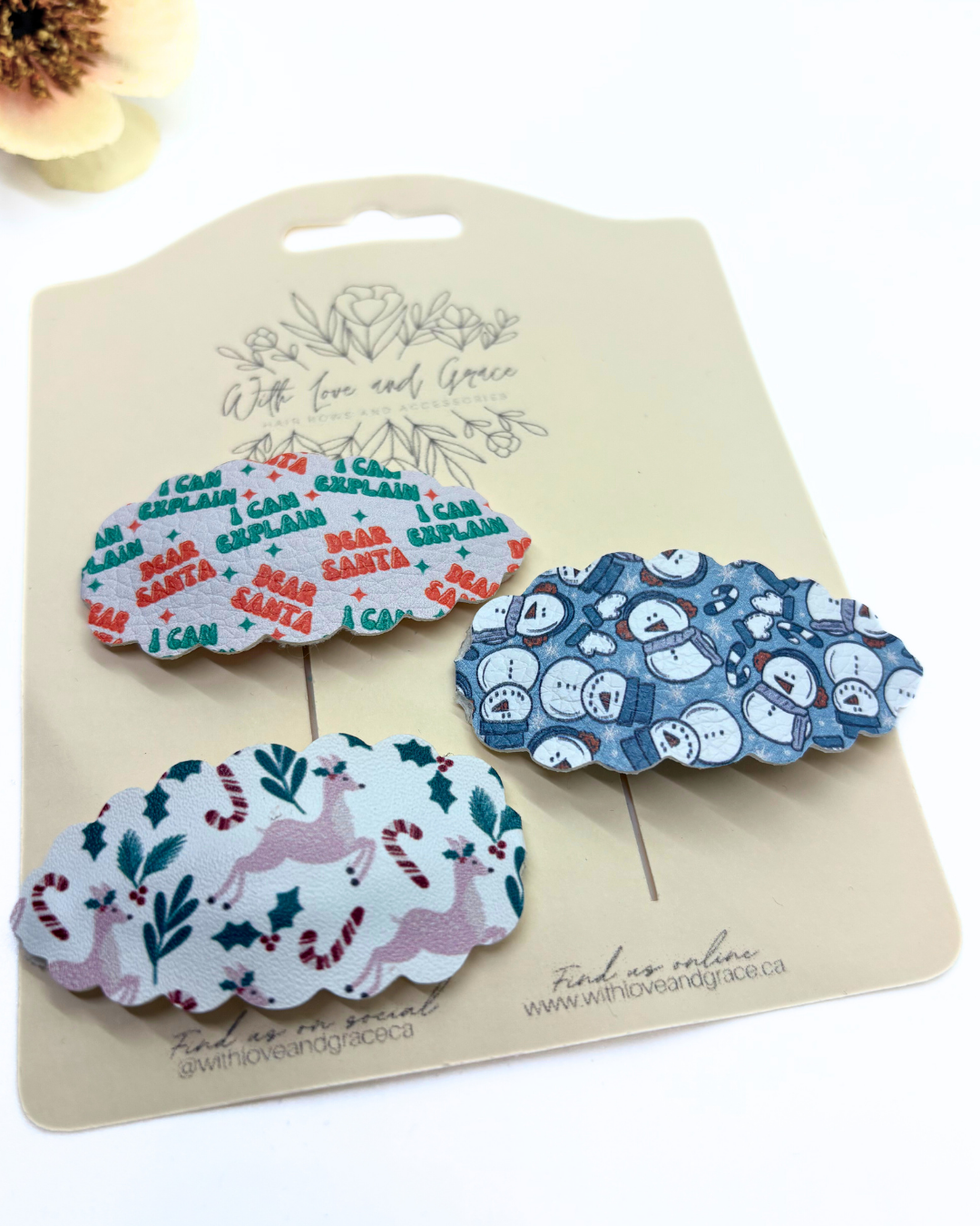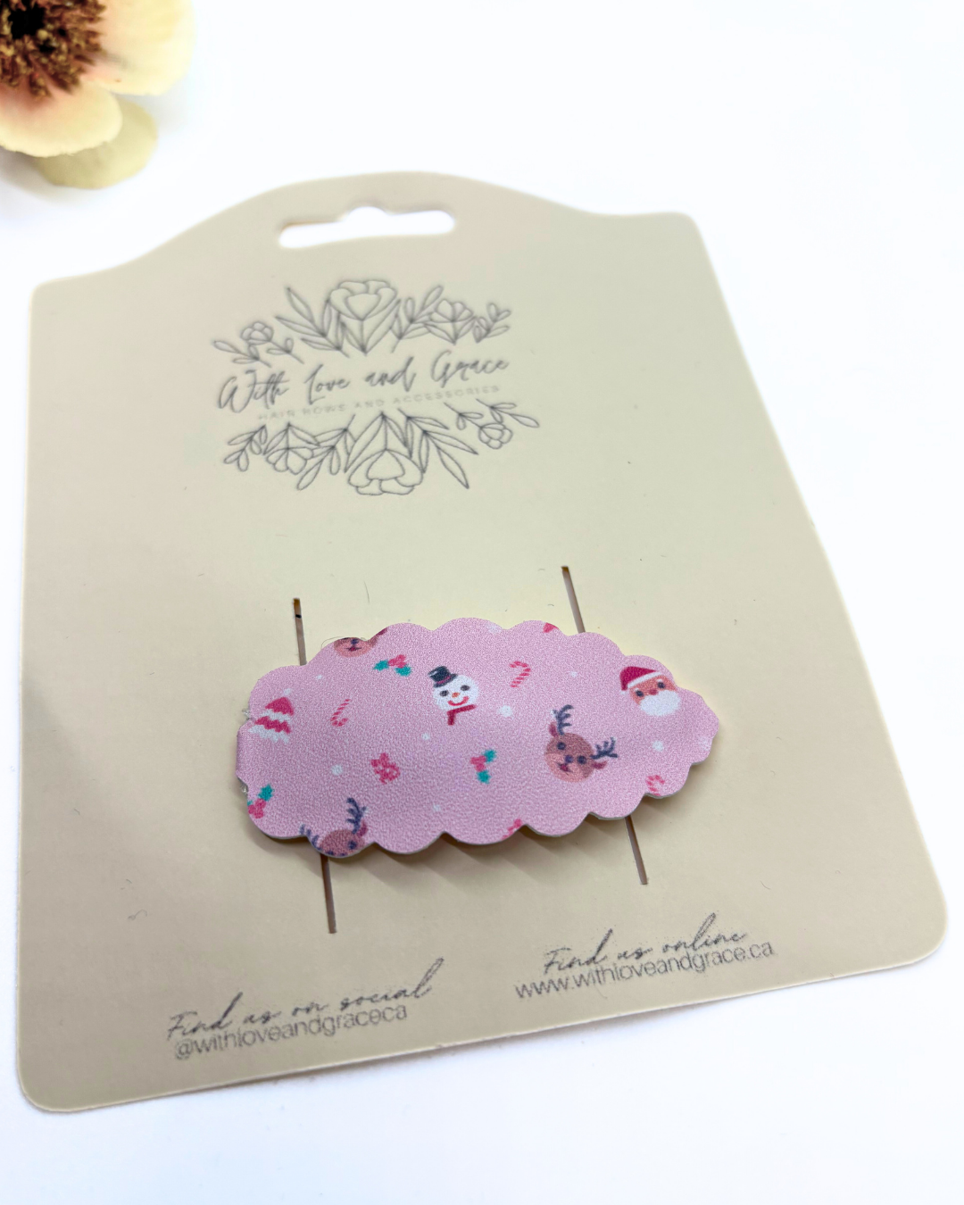 Bring the magic of the North Pole to your look with the North Pole Snap Clips! Featuring playful designs of Santa, reindeer, snowmen, and Santa’s belt, this fun accessory spreads festive cheer wherever you go. Perfect for adding holiday whimsy to any outfit or celebration!